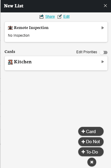 You can add multiple cards, associated with existing rooms or not, to your new to-do list.