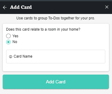 If you want to associate the new card with any existing room in your home, enter the room details and click on "Add card". Select "No" and enter a card name for better customizable needs.