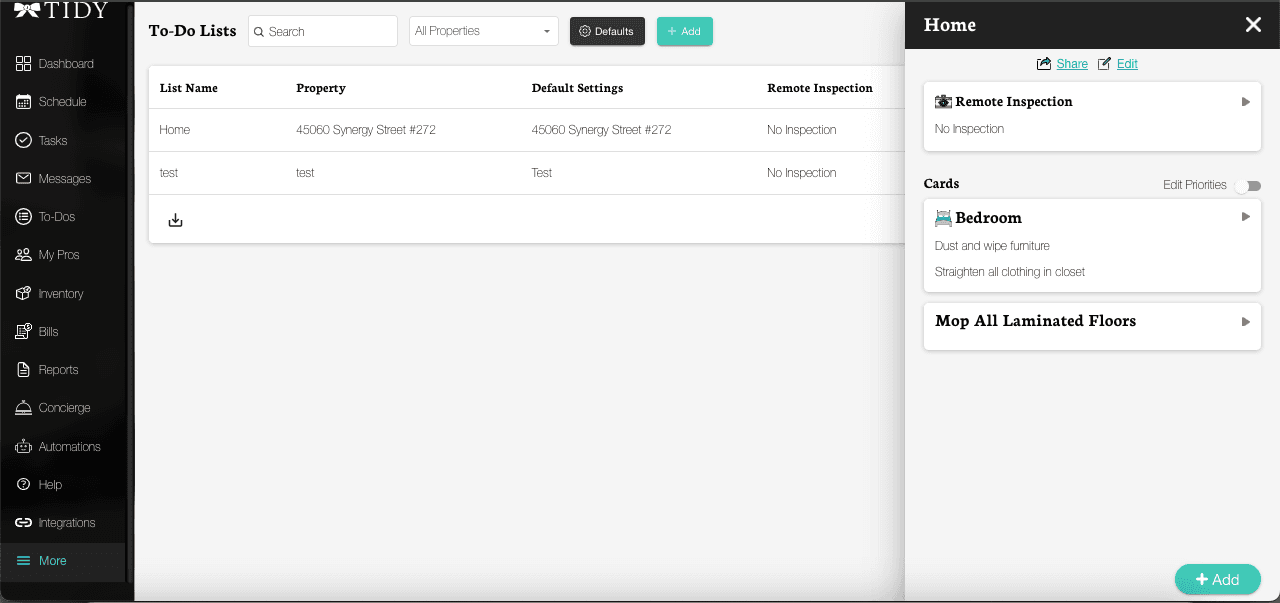 - Automatically assign specific to-dos based on both the property and the type of job. For example, you can set different cleaning tasks for a deep clean versus a standard clean at a specific property.