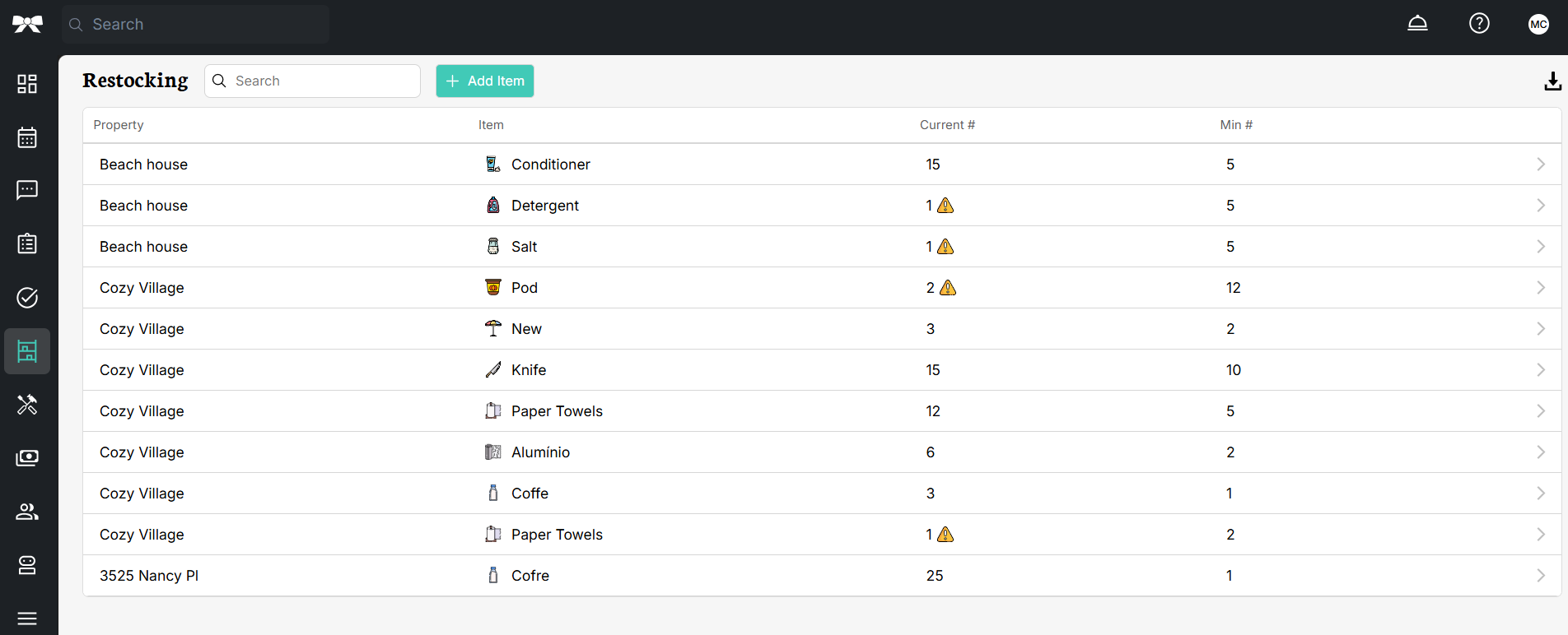 The Restocking section (previously called Inventory) allows you to track the inventory of items in your property. To track maintenance on items, check our Maintenance Tracking section here.