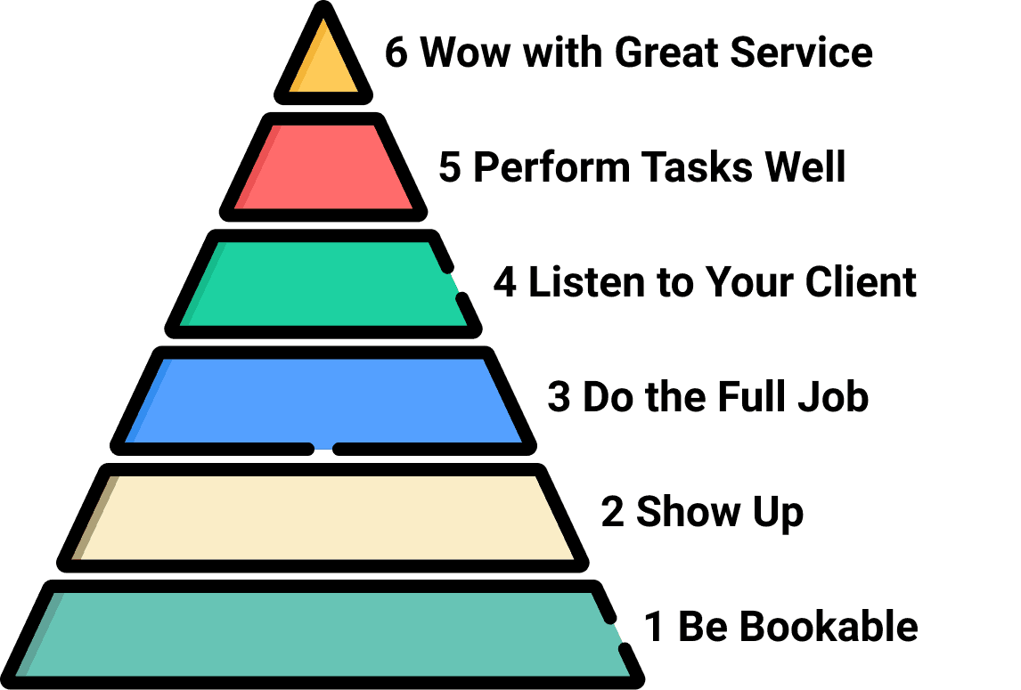 Next, clients typically expect tasks to be performed well. We recommend knowing your craft and continuously learning the tasks involved in the services you provide, to ensure you can do tasks effectively.