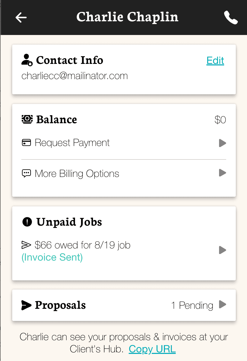 When you send a client a proposal or invoice, they automatically get a link to your client's link with that proposal or invoice. You can get the URL for any client link by tapping "Copy Link" on the client's page. From there, you can send it directly to them.