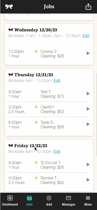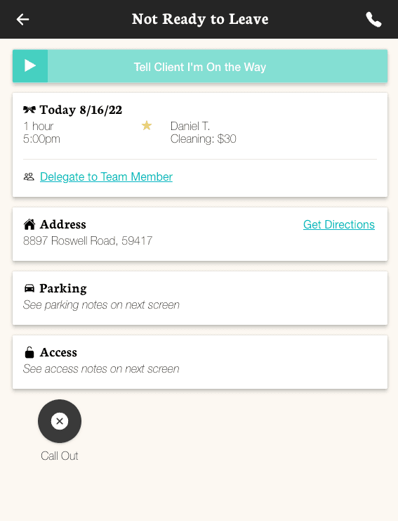 Once you check in and confirm your jobs of the day, you will have access to job addresses and details, like how to park and access the Client's home.