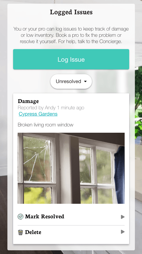As you submit an issue report, a notification will be created on the Client side, under the "Issues" section. You can also submit a picture to make it easier for your Client to identify and address the issue.